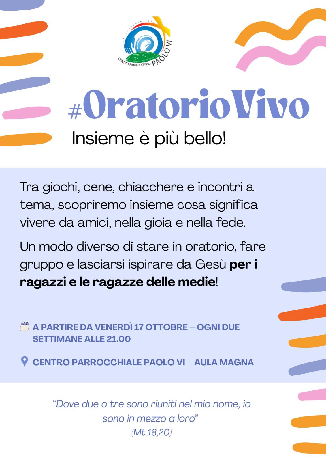 Ritornano gli incontri per i ragazzi delle medie / Notizie / Di Michele Fogliata Anche quest’anno riprendono gli incontri rivolti ai ragazzi e alle ragazze delle scuole medie.Vi aspettiamo numerosi!#OratorioVivo